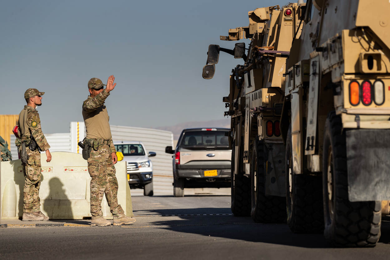 Het is niet eens spitstijd, maar zo’n twintig voertuigen staan voor de hoofdingang van Military Airbase Erbil. Ze willen zo snel mogelijk de doorgaande wegen van het kamp op. Geen reden voor de Nederlandse force protection om minder nauwkeurig te werken. Geen bezoeker komt de basis op zonder geldige toegangspas. Zo kunnen de coalitiecollega’s achter de hekken veilig hun werk doen.