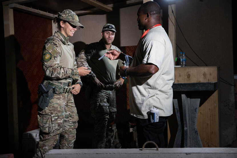 In een kort pauzemoment nemen de militairen een flinke teug water. “Dit is mijn eerste uitzending”, vertelt student werktuigbouwkunde soldaat-1 Bas (23). Als reservist is zijn kans op een uitzending niet zo groot als bij beroepsmilitairen. Zijn collega’s zijn ervaren verkenners van 42 BVE, met al meerdere uitzendingen op hun naam. Toch is er geen zichtbaar verschil tussen hen. “Ik sta hier met zelfvertrouwen dankzij een intensief, gezamenlijk opwerktraject. Daarin zijn we een hechte groep geworden.”