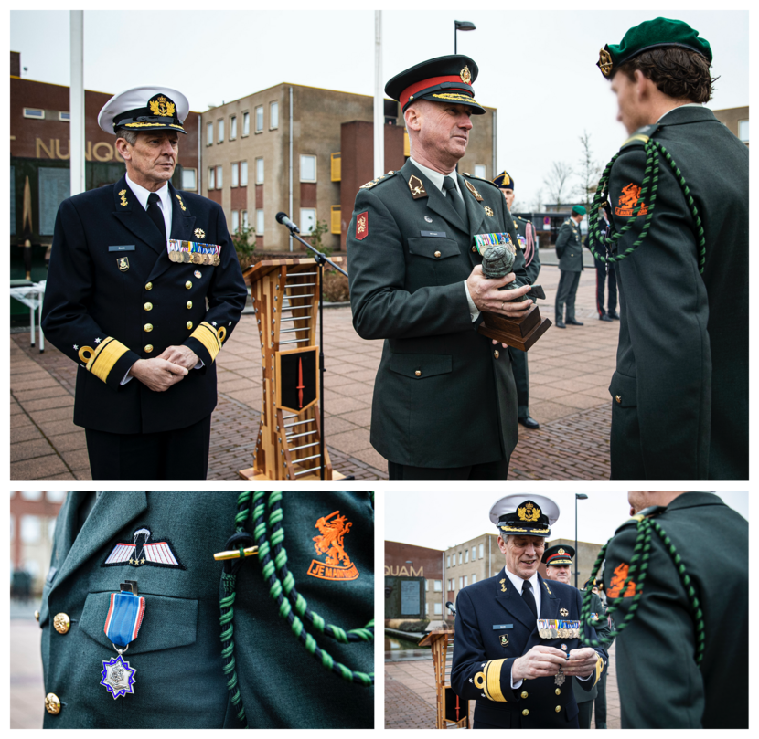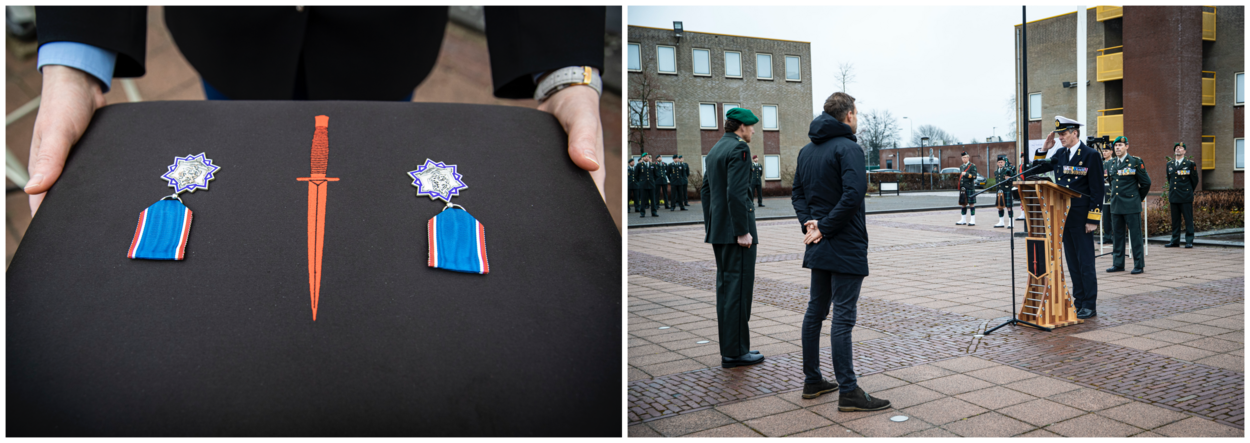 Peter stapte een paar jaar terug over naar een baan bij de politie. Vandaag komt hij terug op de kazerne in Roosendaal om het Ereteken voor Verdienste in zilver en de Sculptuur Operationeel Optreden in ontvangst te nemen. “Het overviel mij een beetje. Zes jaar na dato. Maar het is een mooi gebaar.” Michiel vult aan: “Het voelt ook dubbel. De aanleiding is ontzettend naar, maar de onderscheiding heel eervol.”