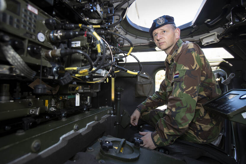 Van sergeant-majoor Gerben van Es komt deze plaat van majoor René Teggeler. De senior stafofficier Pantservoertuigen bij het Kenniscentrum Grondgebonden Manoeuvre heeft de hand in de Midlife Update, die de verkennings- en bewakingsvoertuigen Fennek van de landmacht momenteel ondergaan.