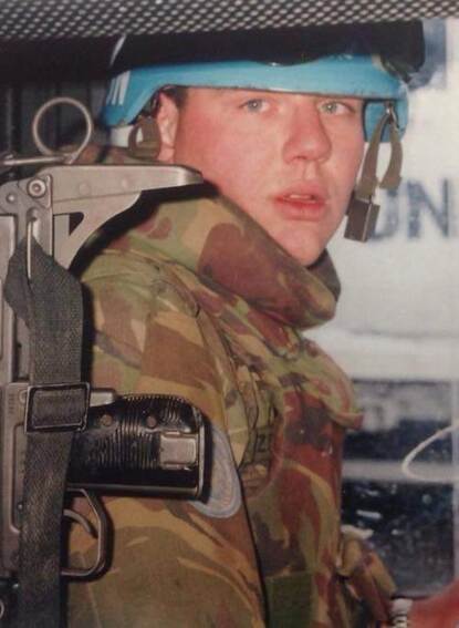 “Met de A-cie zaten we in Busovača, een dorpje van ongeveer 15.000 inwoners. Op een ochtend begon het achter ons in de bergen te rommelen. Ik liep als wachtcommandant buiten en hoorde ineens een indringende fluittoon. Die mortiergranaat klapte precies op een van de torens naast het busstation vlakbij. De luchtdrukverplaatsing was zo groot dat ik tegen de Hesco’s werd aangesmeten. Gelukkig kreeg een maatje het voor elkaar om me snel de bunker in te trekken voordat de shit echt losbarstte. Een paar tellen later sloegen overal mortieren in.”