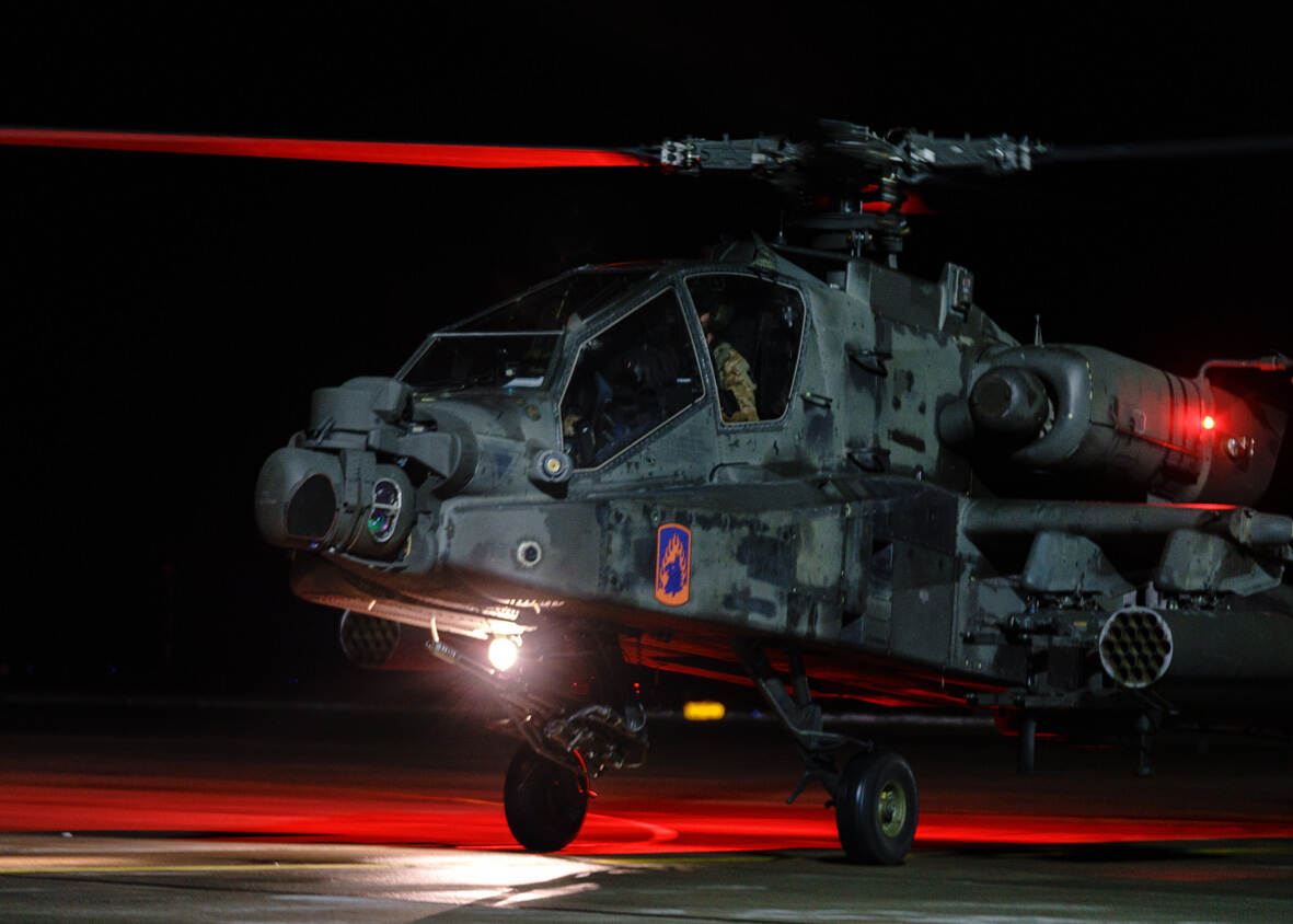 De aankomst van een AH-64D Apache op het vliegveld Lielvarde in Letland. Het Amerikaanse toestel is overgevlogen uit Duitsland om in Letland en Litouwen de gezamenlijke verdediging te versterken en de bevolking van de Baltische staten gerust te stellen. Het toestel van 12th Combat Aviation Brigade doet eerst mee aan oefening Saber Strike 22. Foto: Staff Sergeant Thomas Mort.