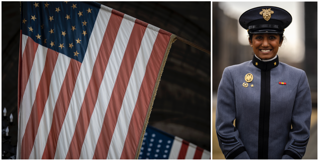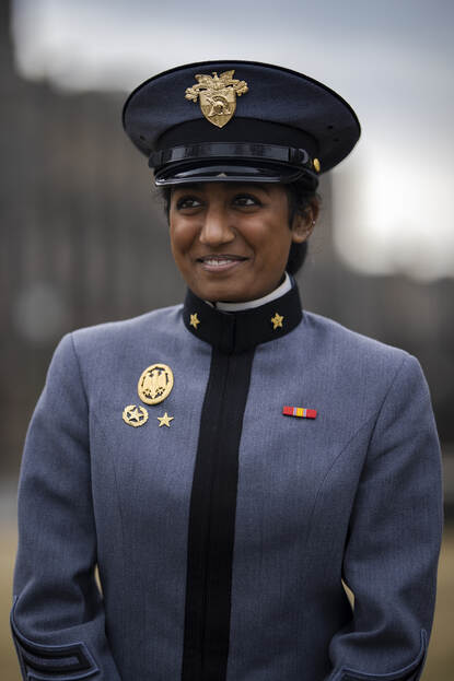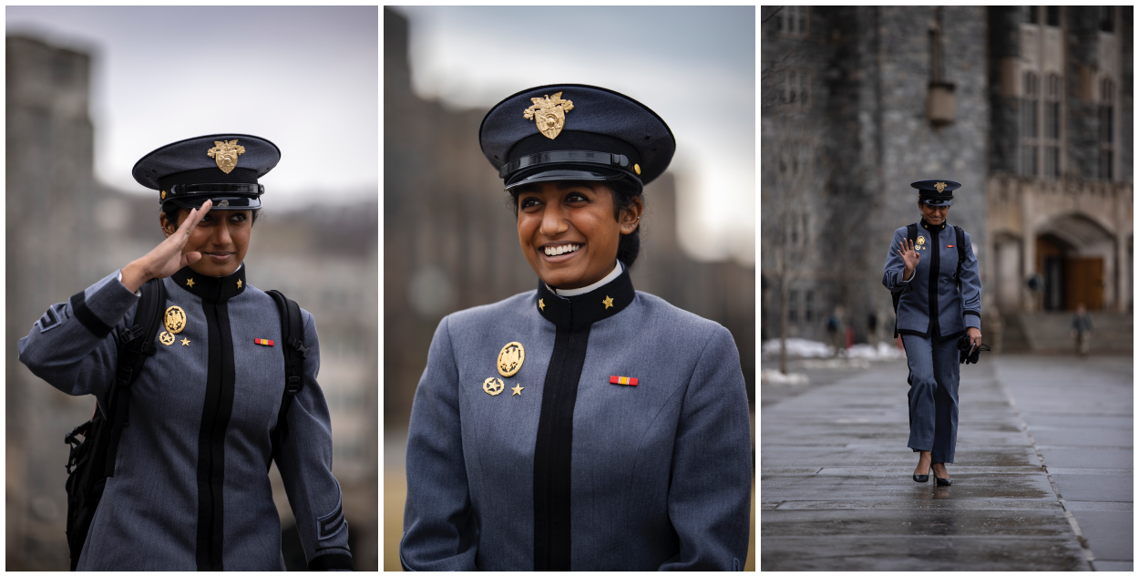 De Amerikaanse Cadet Anusha Pakkam in haar onberispelijke ‘parade-uniform’. Ze is één van de topstudenten van de Nederlandse USMA-docent majoor Mehmet Coban.