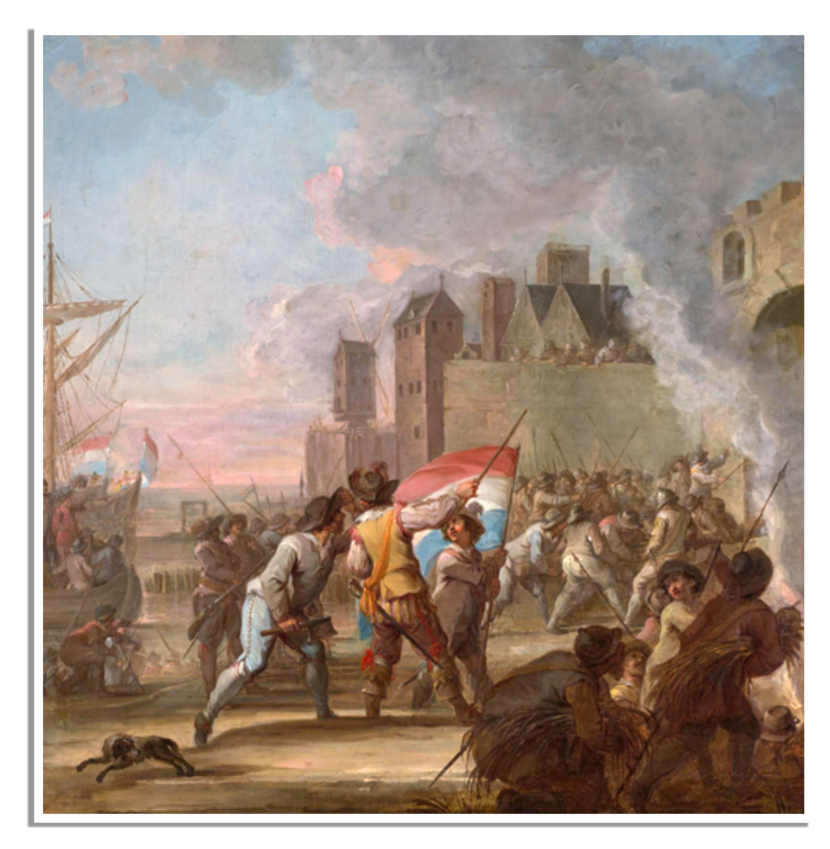 De inname van Den Briel, vastgelegd door Johan Heinrich Keller. Bron: Wikimedia.
