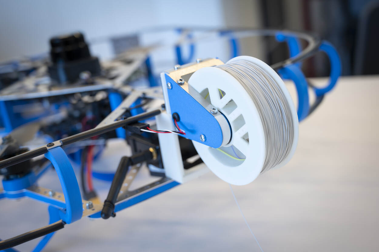 Blijft de kabel haken, dan rolt er automatisch meer draad van de op de U-drone gemonteerde haspel.