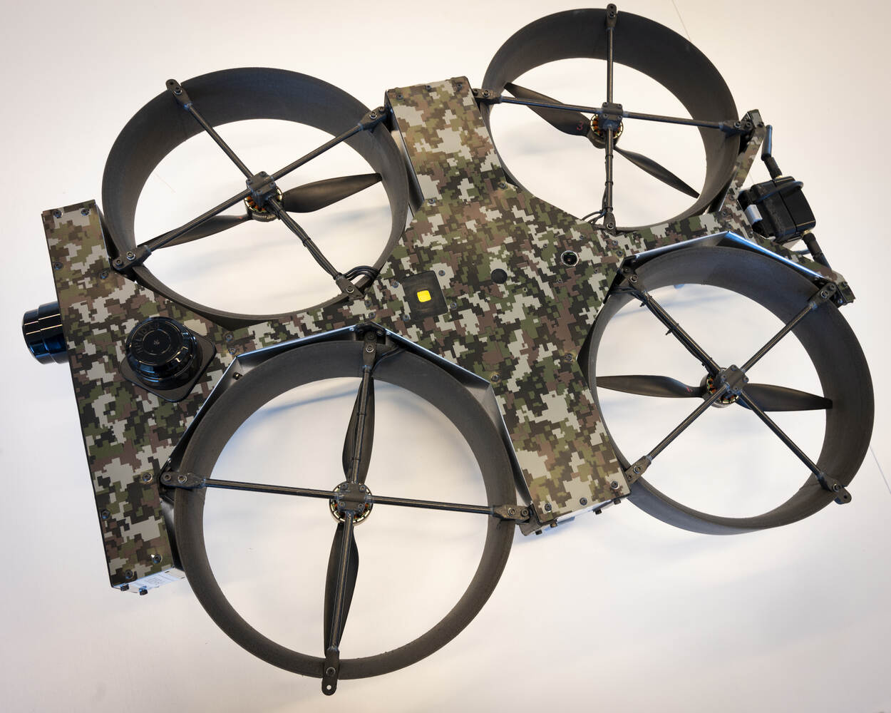 De actieradius van de U-drone bedraagt circa tweehonderd meter. Dat lijkt weinig… “Maar voldoende voor een eerste verkenning van een gangenstelsel”, weet De Jong. Een nadeel is dat de vijand de drone door het rumoer dat hij maakt relatief makkelijk kan detecteren en uitschakelen. “Je kunt hem echter snel laten landen en stilzetten.”