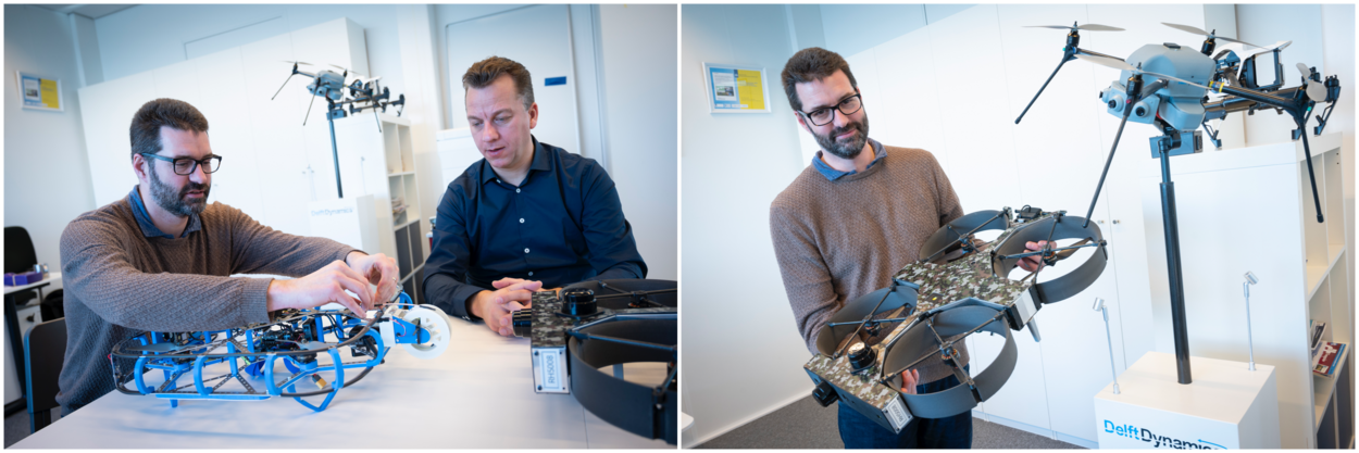 Gerwin Voorsluijs (links) en Arnout de Jong richtten Delft Dynamics zestien jaar geleden samen met twee anderen op. Defensie vroeg het bedrijf de techniek van de U-drone niet al te ‘fijnmechanisch’ te maken. Bij wijze van spreken moet elke militair ermee kunnen werken.