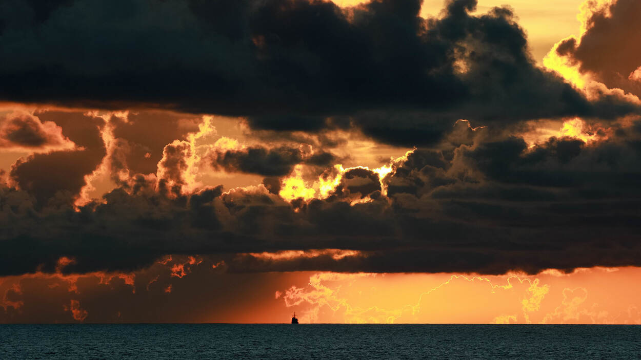 MCS3 Lily Gebauer van de Amerikaanse marine was ongetwijfeld enorm verrast toen ze dit kleurenspel aan de horizon van de Zuid-Chinese Zee zag. Vanaf vliegkampschip USS Abraham Lincoln wilde ze een foto maken van de kruiser USS Mobile Bay in de verte. De zee, ondergaande zon en vooral de wolken maakten dat de aandacht niet naar het oorlogsschip uitging, maar naar het prachtige kleurenspel in de lucht.