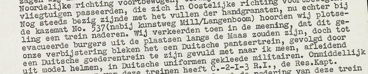 “Het was zo onwerkelijk. Men wist dat er een trein aan zou komen, maar toen dat een militaire pantsertrein bleek te zijn met Duitse identificatietekens, moest de knop bij de verdedigers om.” Eerste luitenant Ludwig van Dijk, artillerist en in het dagelijkse leven werkzaam bij de Vuursteunschool in ’t Harde, is een wandelende encyclopedie als het gaat om de Slag bij Mill.