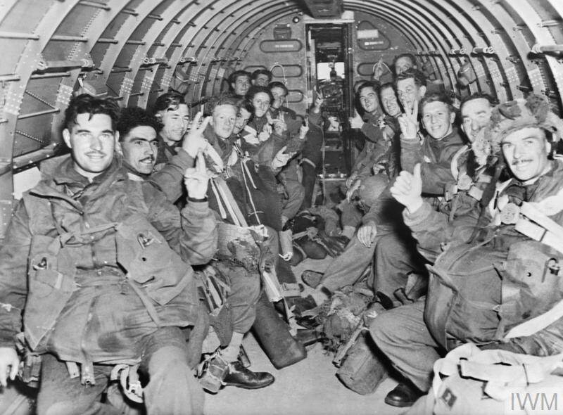 De geallieerden proberen via operatie Market Garden het hele gebied van Eindhoven tot Arnhem te veroveren. Doel is het innemen van de Rijnbrug in de Gelderse hoofdstad om zo te kunnen doorstoten naar Duitsland. Eindhoven en Nijmegen worden daadwerkelijk bevrijd, maar het lukt de parachutisten niet om de Rijnbrug te veroveren. Op de foto zitten ze nog vol vertrouwen in het vliegtuig naar Arnhem.