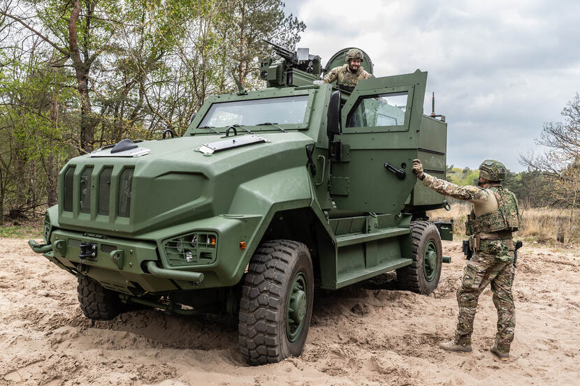 We kunnen er geen genoeg van krijgen: de Manticore. Onlangs ging het nieuw wielvoertuig op tournee langs de verschillende defensielocaties. Vanaf een afstandje lijkt het nog een vrij gewoon militair voertuig, maar wanneer je deze twee militairen ziet besef je ineens dat ‘ie wel heel groot is. Een echte krachtpatser, net als fotograaf sergeant-1 Cristian Schrik.