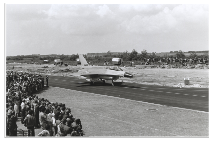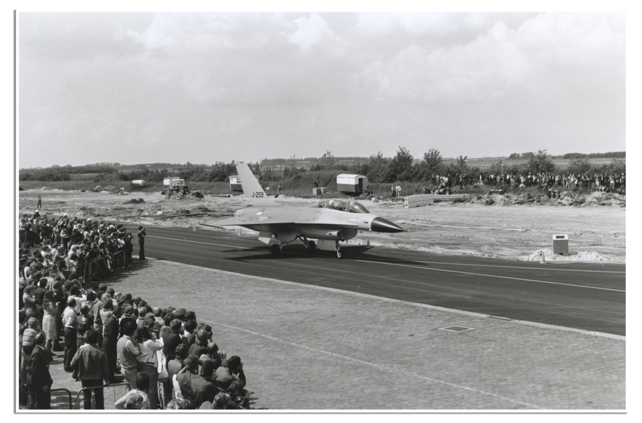 De aankomst van de eerste F-16 op Leeuwarden op 7 juni 1979. Niets herinnert meer aan de hobbels die Henk Vredeling moest nemen om dit mogelijk te maken. Foto: NIMH.