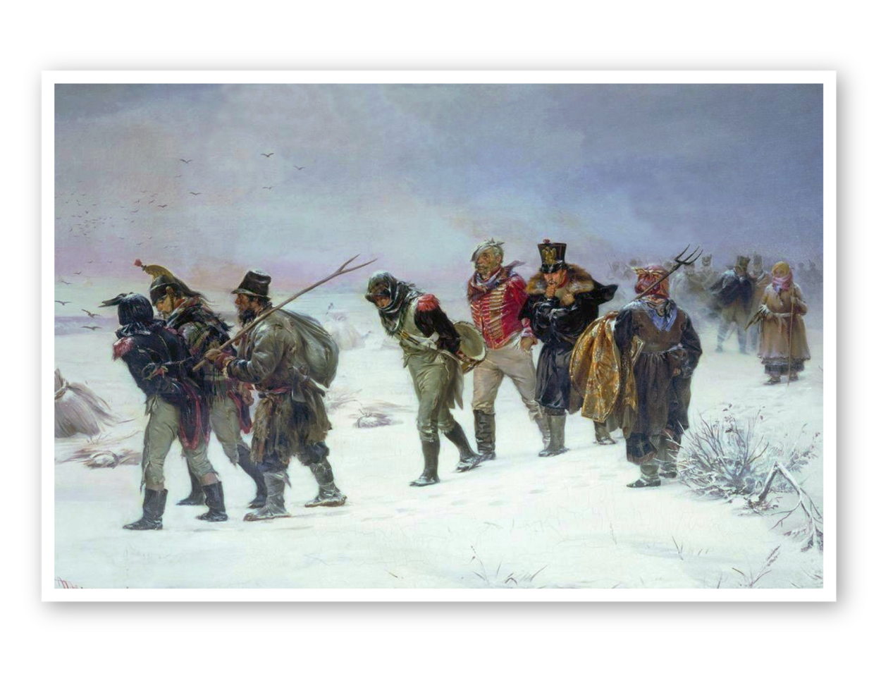 Van de strijdmacht die op 24 juni 1812 de Memel overstak, zijn dan nog twintigduizend militairen over. Napoleon Bonaparte is er dan al niet meer bij. Hij vertrekt op 5 december naar Parijs, omdat daar een mislukte staatsgreep is geweest.