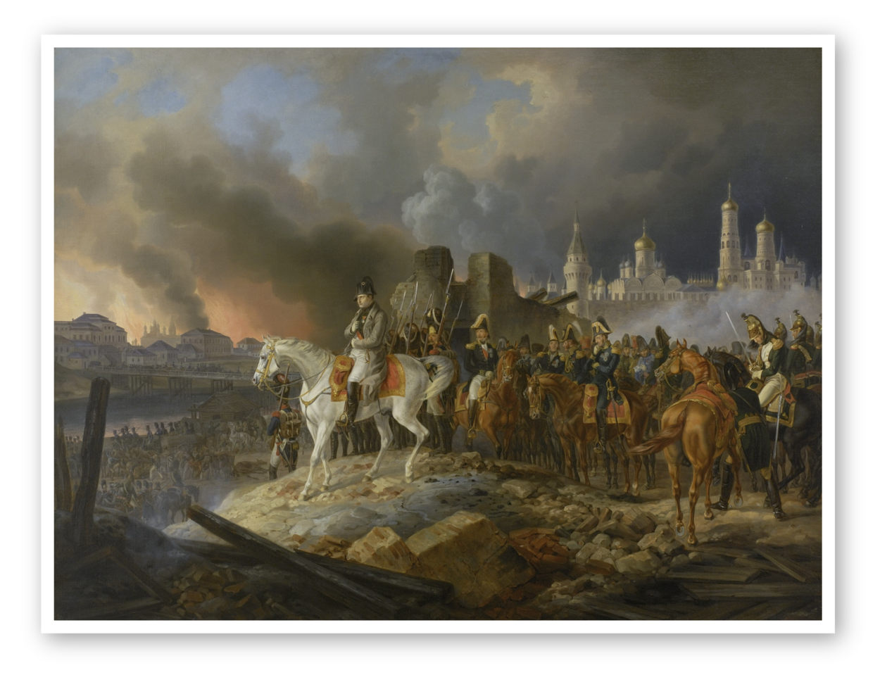 Drie weken later is driekwart van de staf afgebrand. De eerste sneeuw valt en de Fransen hebben geen beschutting tegen de extreme kou. Omdat ook voorraden letterlijk in rook zijn opgegaan, staan ze met lege handen. Napoleon kan niet anders dan terugtrekken. Op 20 oktober 1812 verlaat hij Moskou met nog slechts tachtigduizend soldaten.