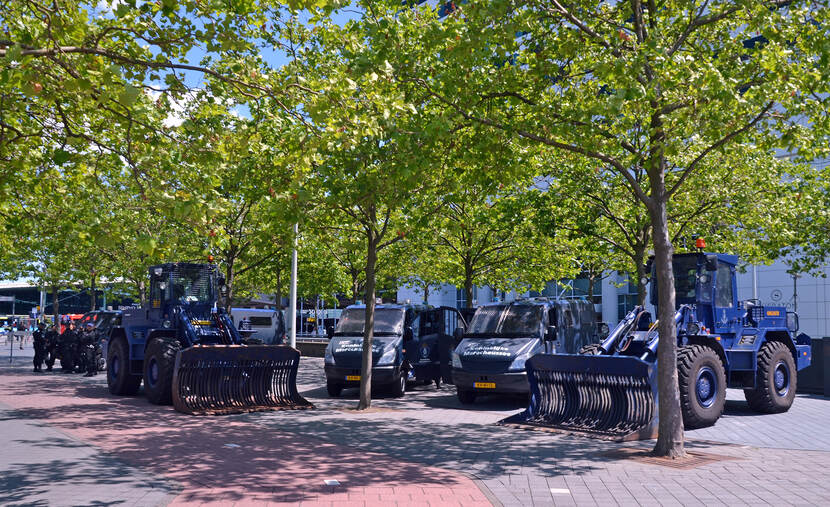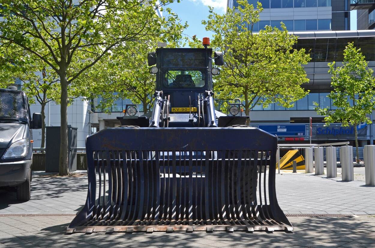 Tijdens de boerenacties stonden er op Schiphol enkele bijzondere voertuigen klaar om eventuele overlast te helpen beperken. Ex-marechaussee Hans Verhoog maakte bijgaande foto om zijn oud-collega's te vereeuwigen.