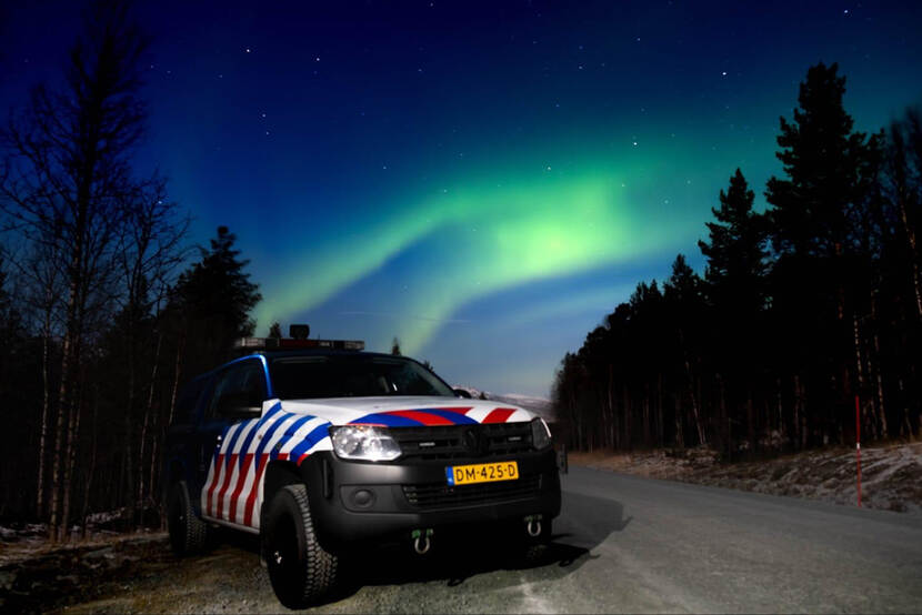 De wintertraining van het Korps Mariniers in Noorwegen levert altijd mooie plaatjes op. Ook voor de plakboeken van de marechaussee. KMar-teamleider Mark Jansen van Brigade Veluwe was afgelopen winter een van de gelukkigen die het Noorderlicht mochten aanschouwen. En hij wist dat ook nog eens fraai in beeld te vangen. Daar kan geen blauw zwaailicht tegenop!