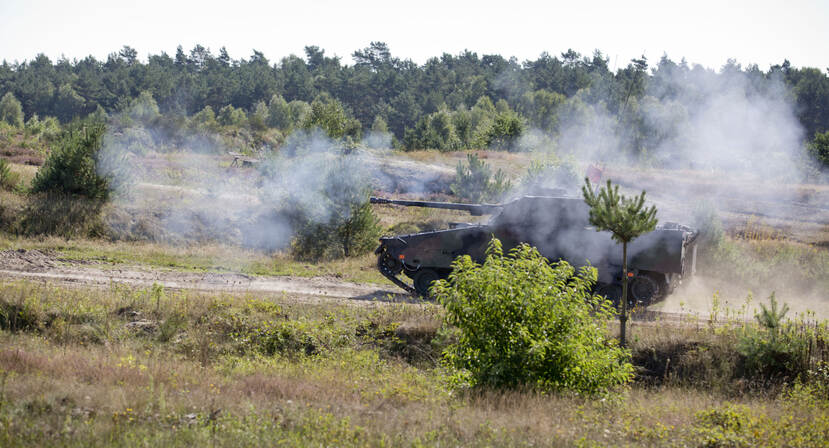 Daarvoor moeten we even terug in de geschiedenis. In de zomer van 2020 tekenden de directeur van Rheinmetall Waffe Munition GmbH (RWM), Roman Köhne, en de toenmalige plaatsvervangend Directeur Defensie Materieel Organisatie, generaal-majoor Ivo de Jong, een raamcontract waar twee jaar lang aan was gewerkt. De inhoud: de komende tien jaar is Defensie verzekerd van de levering van 155 mm granaten voor de Pantserhouwitser, 40 mm rookgranaten én 35 mm munitie voor het infanterievoertuig CV90.