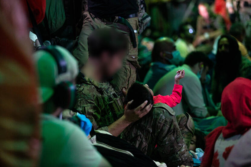 “We haalden de stoelen eruit om zoveel mogelijk ruimte te creëren. In vredestijd passen er tachtig passagiers in de kist. De laatste vlucht hebben we 176 personen meegenomen. Rijen Afghanen naast elkaar, spanbanden die dienden als veiligheidsriem. Dat beeld vergeet je niet.”