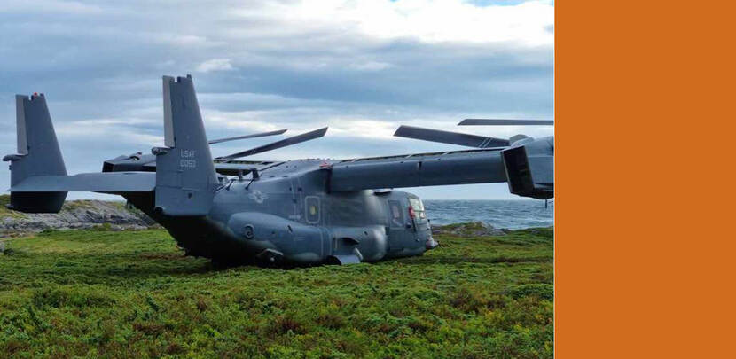 Een CV-22 Osprey van het Amerikaanse Special Operations Command staat al ruim een maand aan de grond in een natuurreservaat op het Noorse eiland Senja en kan daar niet weg.