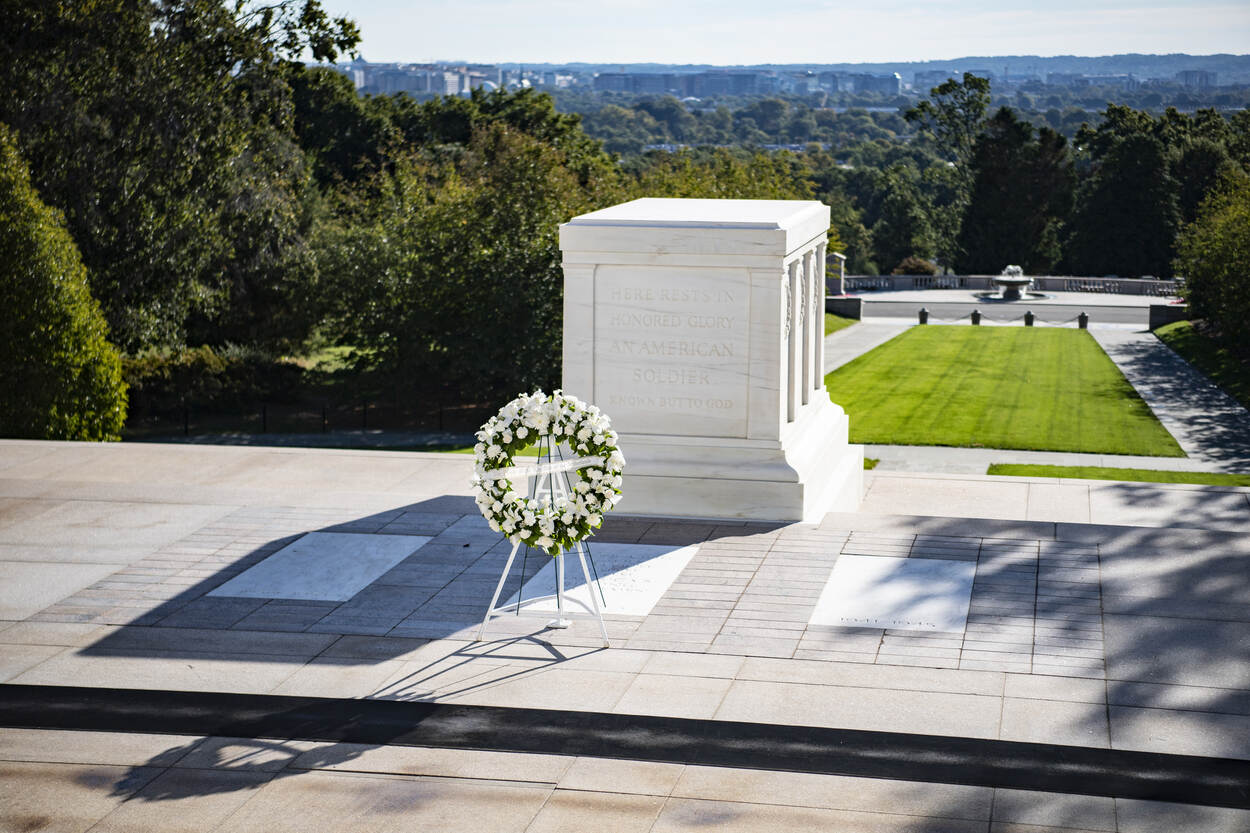 Fotograaf Elisabeth Fraser maakte dit stilleven van het graf van de onbekende soldaat op de Amerikaanse nationale begraafplaats in Arlington. De krans is zojuist gelegd door minister Hanke Bruins Slot van Binnenlandse Zaken en Koninkrijksrelaties. Voor de bewindsvrouw ongetwijfeld een bijzonder moment omdat zij als landmachtofficier tijdens haar uitzending naar Afghanistan aan den lijve ondervond wat het betekent om militair te zijn en je in te zetten voor vrede en veiligheid.