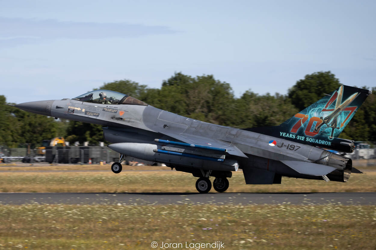 De 21-jarige Joran Lagendijk uit Dronten is een echte vliegtuigliefhebber en fotografeert als hobby toestellen van verschillende luchtmachten. En dat doet Joran zeker niet onverdienstelijk. Uit de ruime selectie die hij ons opstuurde dit keer aandacht voor een F-16 van 312 Squadron (Volkel) met een fraaie staartbeschildering.