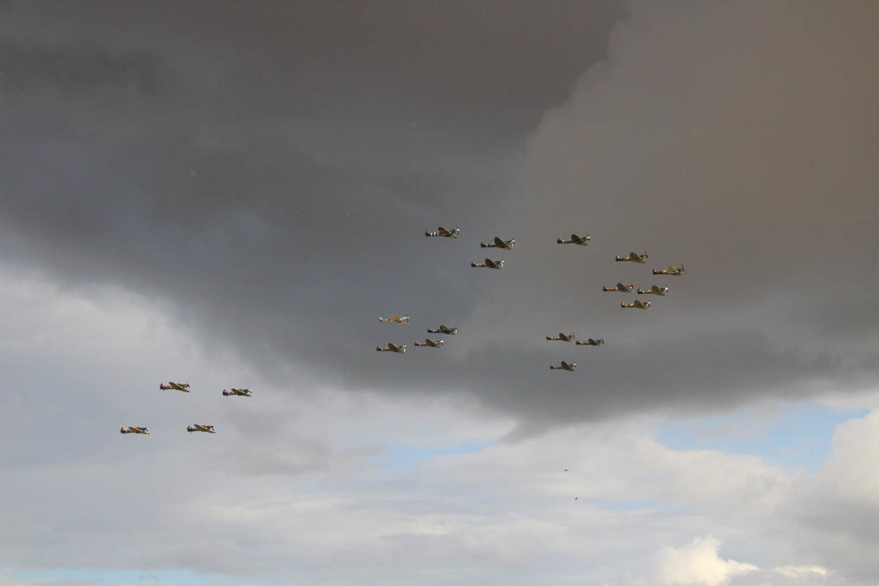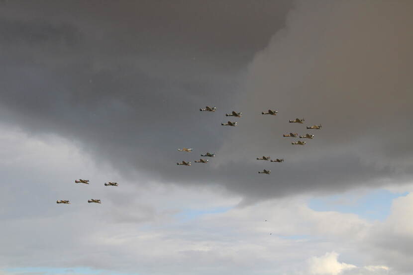 Lezer S. Schokkenbroek bracht in september een bezoek aan het Britse vliegveld Duxford ter gelegenheid van de herdenking van de 'Battle of Britain' uit 1940. Hij fotografeerde een formatie van liefst twintig Spitfires en Hurricanes. Naast de jachtvliegtuigen was er ook nog een 4-motorige B-17 bommenwerper, maar die is niet in beeld. Niet alleen een indrukwekkend gezicht maar ook bijzonder dat er nog zoveel vliegwaardige toestellen zijn uit de Tweede Wereldoorlog.