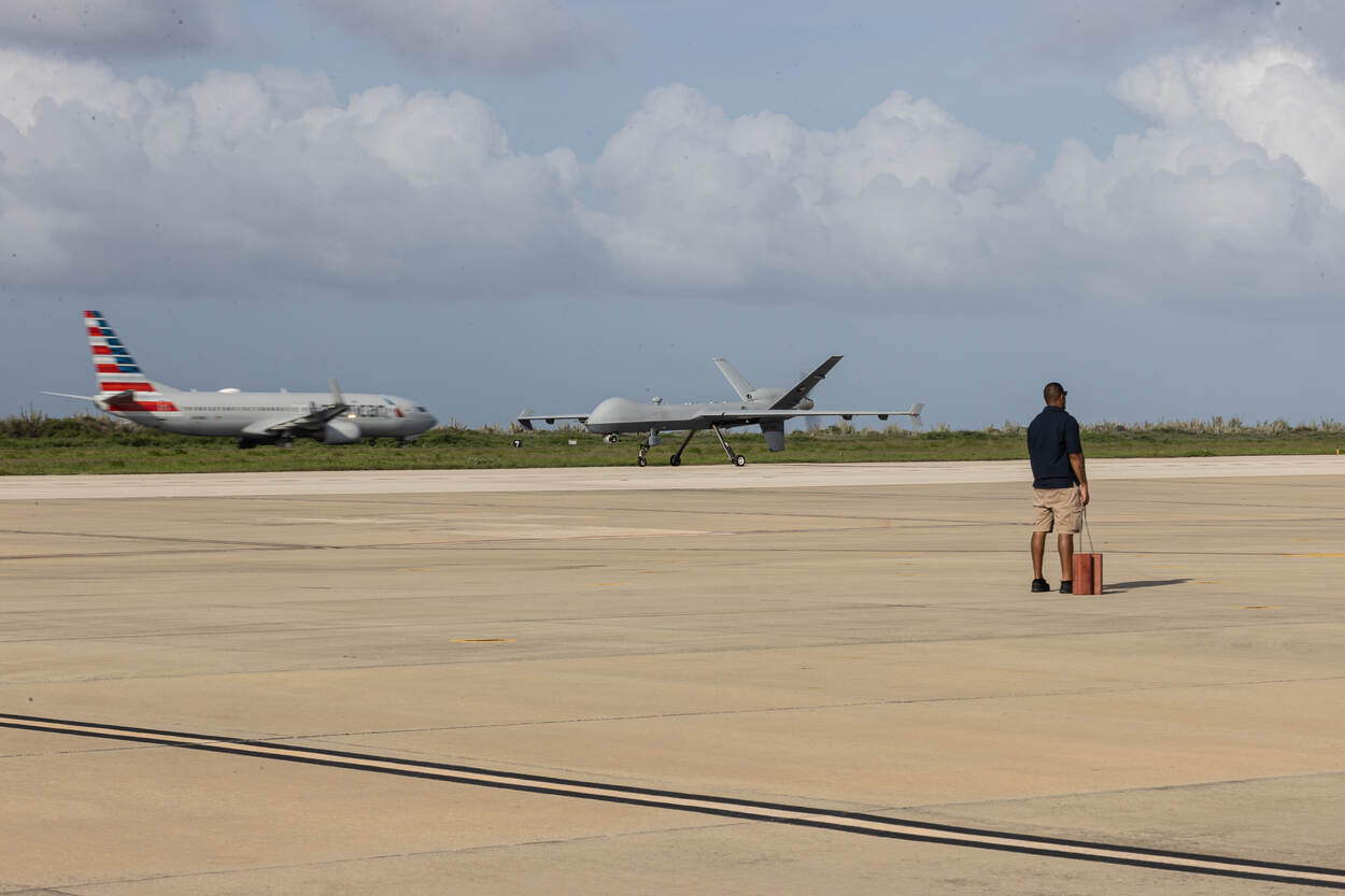 De passagiers van een toestel van American pakten de aankomst van de MQ-9 nog net mee.