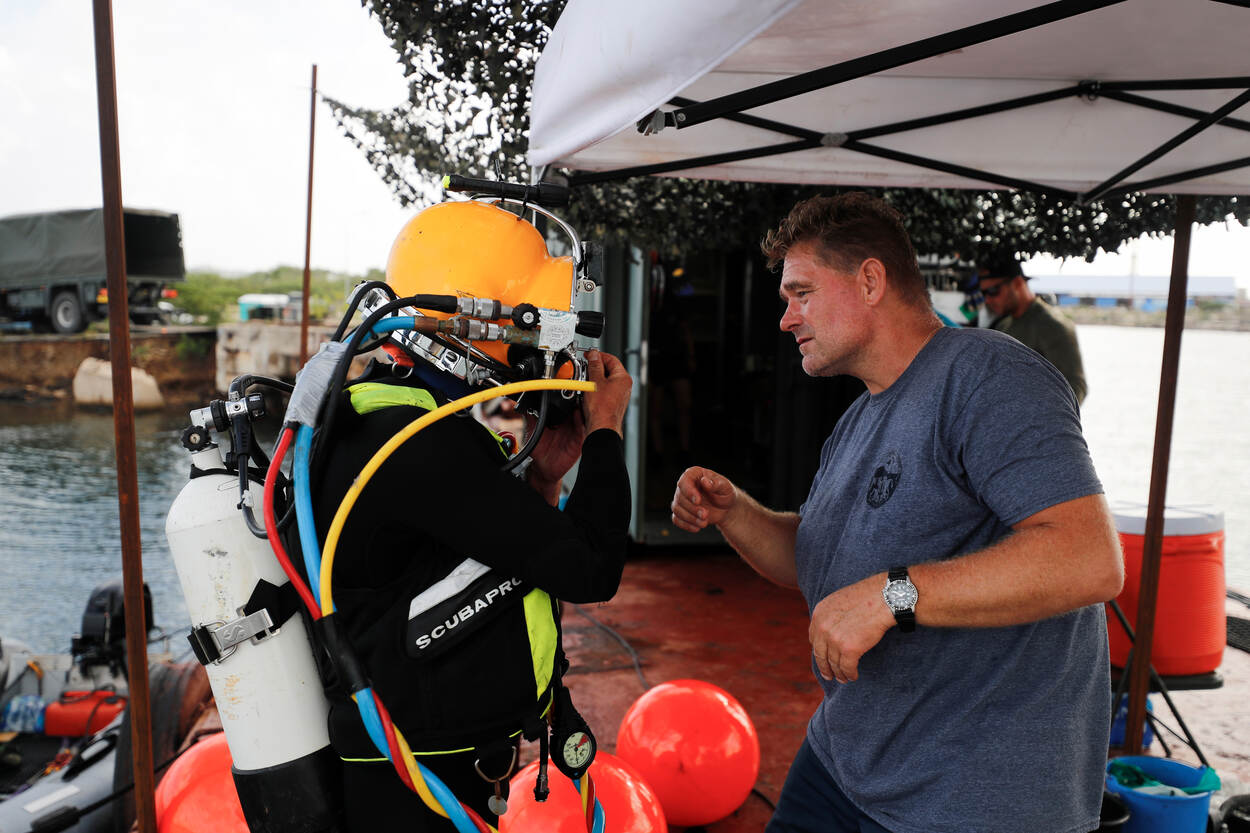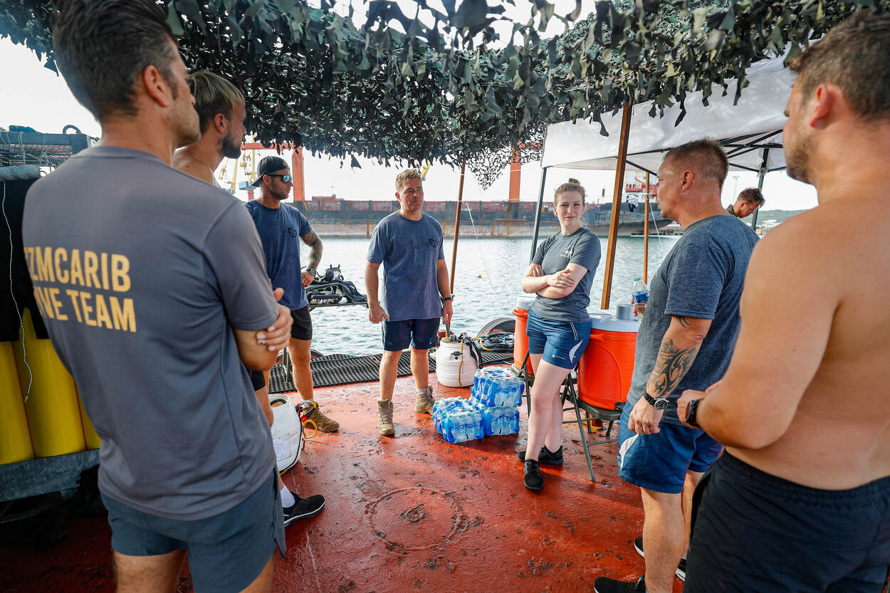 “Mijn idee was om de Divex voor ons team een keer anders in te vullen. Normaal gesproken wordt er een oude container in de haven afgezonken en gaan we aan de slag om die boven te halen. Maar dat wordt op een gegeven moment routine. Ik wilde iets bieden met een grote meerwaarde. Voor de deelnemers én voor het eiland”, legt teamleider Salvage (berging) bootsman (sergeant) Stef Schrage de achterliggende gedachte van de klus én oefening uit.