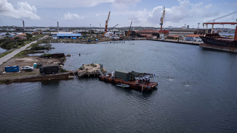Defensie Duikgroep ruimt ponton in haven Curaçao