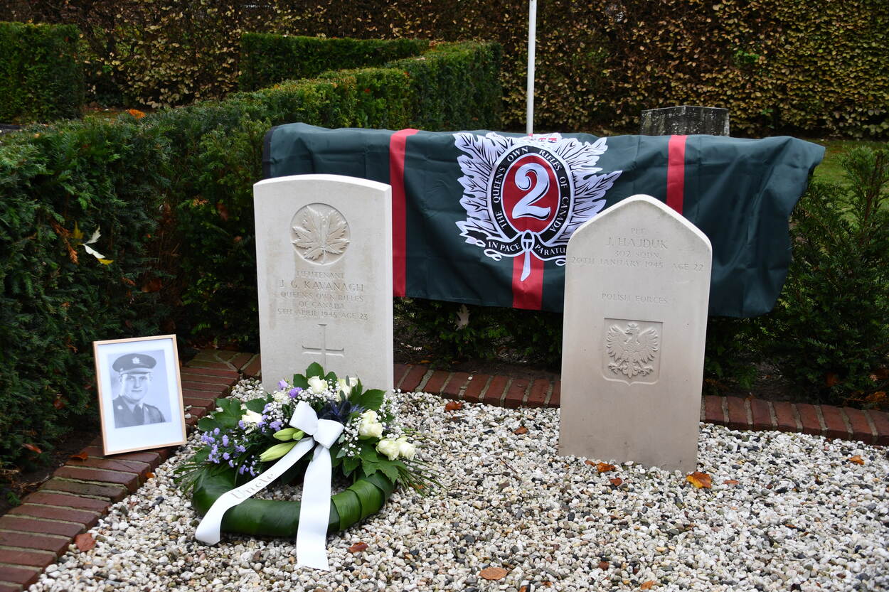 Het graf van de ‘unknown soldier’ op de algemene begraafplaats in Steenderen heeft na 77 jaar dan eindelijk officieel een naam. Onderzoekers identificeerden de stoffelijke resten als die van de Canadese luitenant John Gordon Kavanagh. Hij sneuvelde in april 1945 bij gevechten in het buurtschap Rha, gemeente Bronckhorst.
