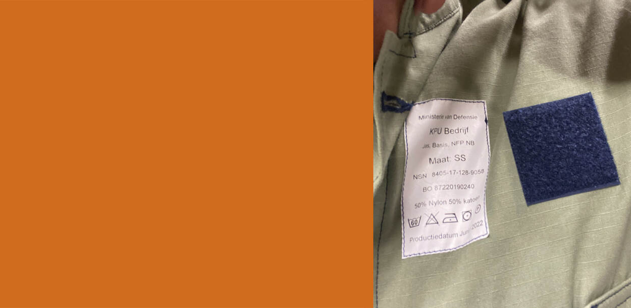 Bron: Defensie. Foto: MCD (een maatlabel in een nieuw, Nederlandse uniform)