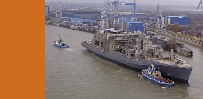 Het nieuwe Combat Support Ship van de marine heeft onlangs het dok verlaten. Het schip wordt gebouwd op de werf van Damen in Roemenië. De toekomstige ‘Den Helder’ lag twee dagen aan de kade langs de rivier de Donau. Het was de eerste keer dat het schip het dok verliet. Dat was nodig om tijdelijk plaats te maken voor andere schepen.