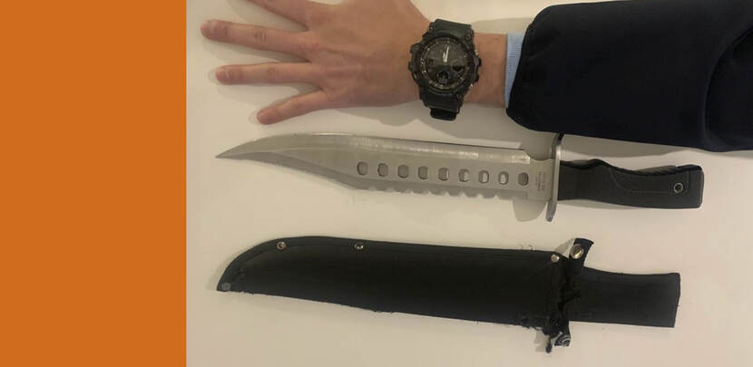 Een achttienjarige man is deze week door de marechaussee aangehouden omdat hij met een groot mes in zijn broekband over de luchthaven liep.