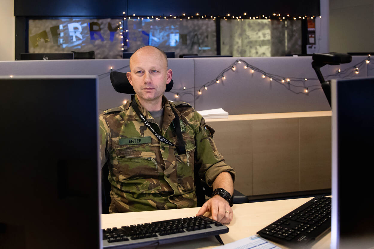 “Mysterieus? Welnee”, lacht adjudant Martin Fokkens. “Er is niks geheims aan het werk dat wij doen. De informatie waarmee we hier werken is alleen wel geclassificeerd. Vandaar al deze maatregelen.”