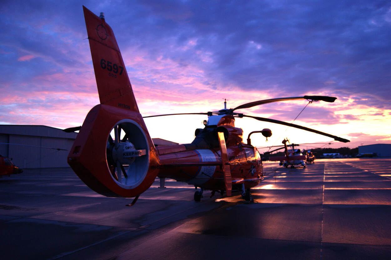 Aan boord geen lichtgrijze NH-90 maritieme gevechtshelikopter, maar een rode Amerikaanse MH-65 Dolphin van de Amerikaanse kustwacht. Deze heli maakt deel uit van het Helicopter Interdiction Tactical Squadron (HITRON), dat is gestationeerd in Jacksonville, Florida. Het is een bewapend squadron van de Amerikaanse kustwacht dat vooral wordt ingezet voor anti-drugstaken.