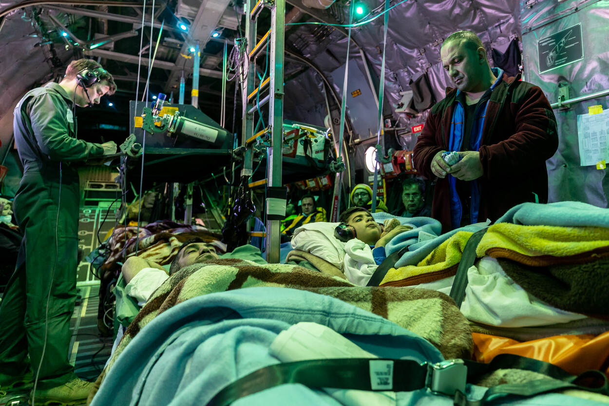 Loadmaster sergeant-1 Luuk vult aan: “We hebben veel mensen geholpen die dat hard nodig hadden. Zovéél patiënten aan boord… Dat was indrukwekkend, ook door wat ze hebben meegemaakt.”