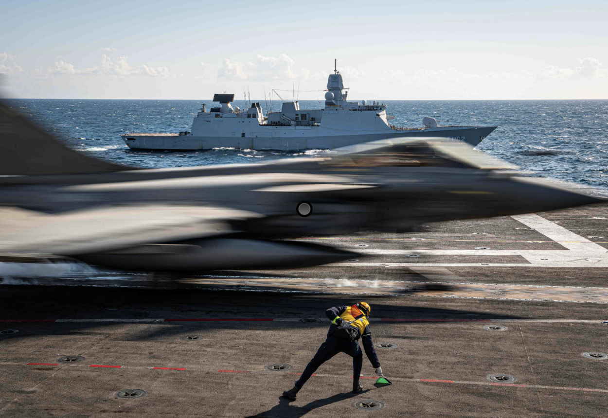 Een bijzondere opname van onze Franse collega's: het Franse vliegkampschip FS Charles de Gaulle met op de achtergrond onze eigen Zr.Ms. De Zeven Provinciën. De foto werd gemaakt in de Middellandse Zee. Beide schepen doen mee aan de grootste Franse oefening in dertig jaar 'Orion 23'. De deelnemers bereiden zich hiermee voor op een grootschalig conflict. De foto werd genomen door een fotograaf van de Franse marine.