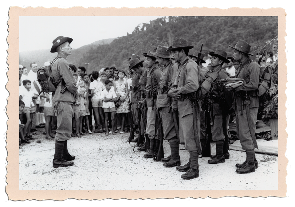 Een groep KNIL-militairen staat aangetreden. Foto: NIMH