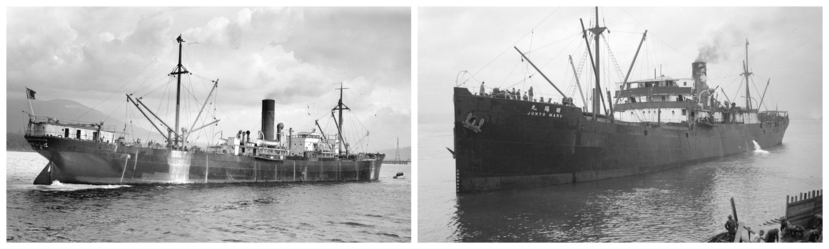 De Japanse hellships ‘Pacific Maru’ en de ‘Junyo Maru’ (rechts) die op 18 september 1944 op de Indische Oceaan tot zinken werden gebracht door de Engelse onderzeeboot HMS Tradewind. Foto: City of Vancouver Archives (Walter Edwin Frost)