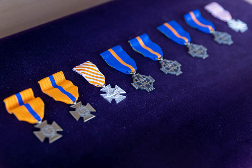 Alle dapperheidsonderscheidingen die maandag op de Van Ghentkazerne in Rotterdam werden uitgereikt.