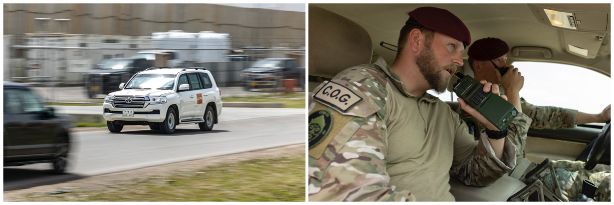 Aan alles merk je dat het geen oefening is. “Druk ‘m aan de kant!” zegt Arend geïrriteerd als een voertuig niet snel genoeg reageert op de lichtsignalen van Justin. Al claxonnerend trapt de soldaat het gas in, terwijl zijn groepscommandant met verschillende partijen tegelijk probeert te communiceren. Radio in de ene hand voor contact met het TOC, telefoon in de andere om precies te achterhalen wat er aan de hand is.