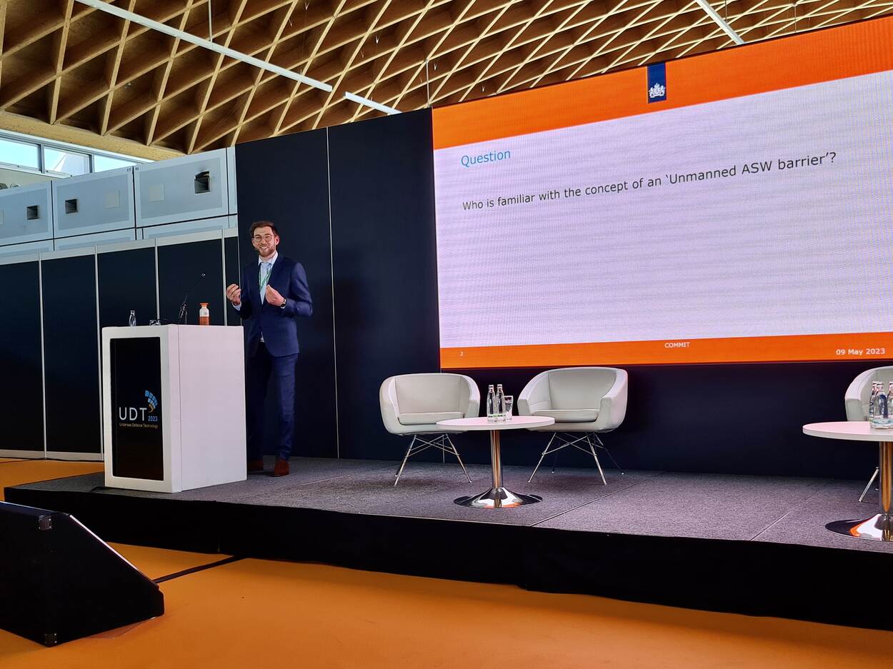 Dat er genoeg kennis is in ons land, werd tijdens de conferentie opnieuw erkend. Niet voor de eerste keer mocht één van de projectleiders onderwatergevechtstechnologie bij Defensie, Otto Koetsier, ‘zijn’ project voor het voetlicht brengen: een zogenoemde anti-onderzeeboot barrière (ASW Barrier).