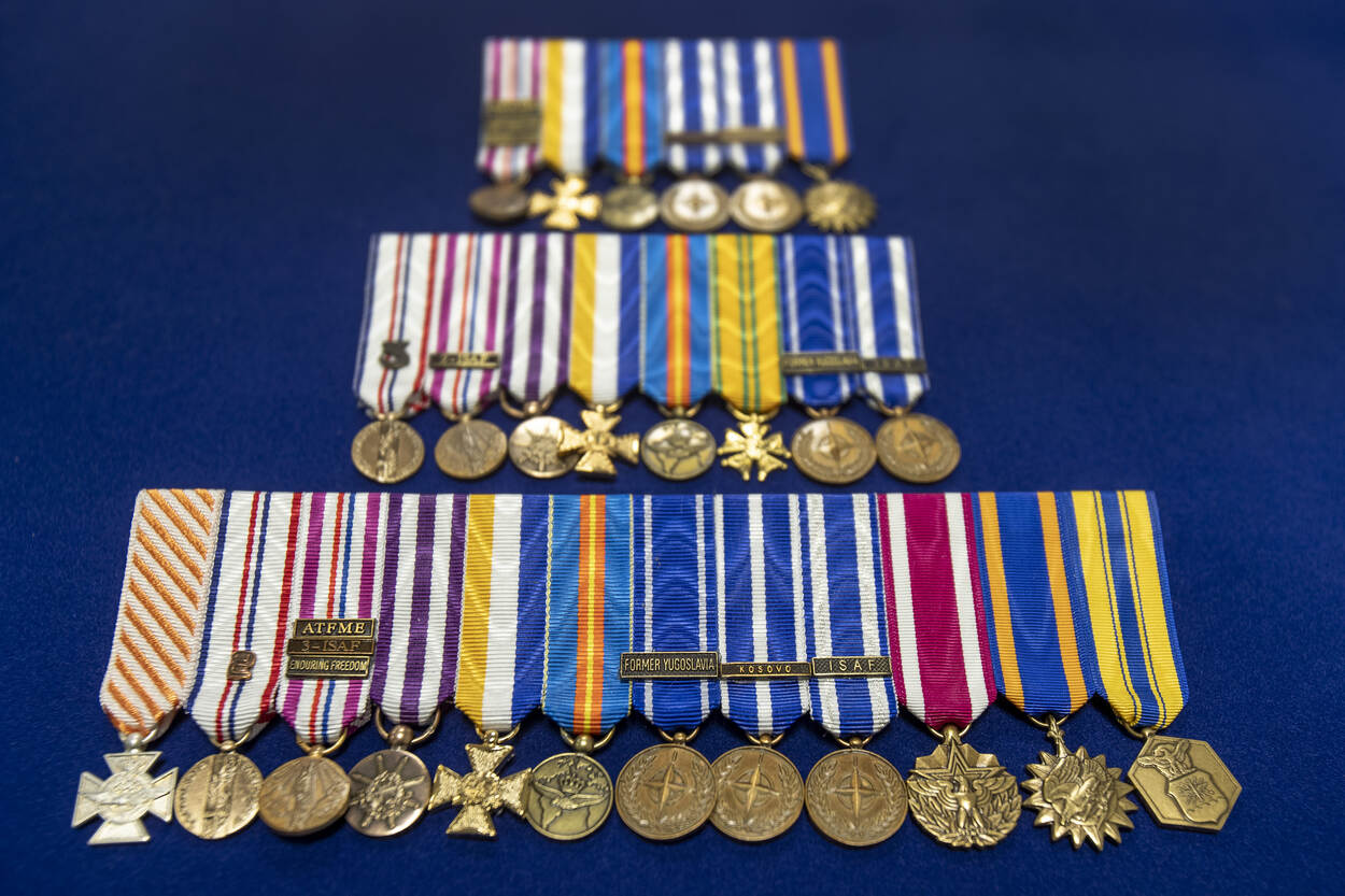 En dat is best bijzonder, want van de kleine honderd onderscheidingen die ons land rijk is heeft Defensie er zelf slechts enkelen in bezit. “Militairen dragen er wel veel. Die zijn niet allemaal van de krijgsmacht, maar van de Staat der Nederlanden, van particuliere organisaties, de NAVO of de Verenigde Naties. Denk bijvoorbeeld aan uitzendmedailles”, weet overste Woudenberg.