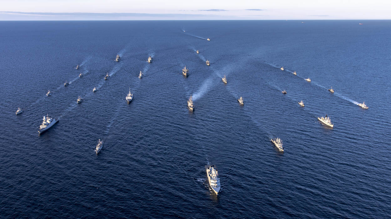 Fraaie overzichtsfoto van diverse schepen die deelnemen aan de oefening Baltic Operations (BALTOPS) 2023. Meer dan zesduizend militairen en tal van schepen uit 21 landen zorgen tot en met vandaag voor een grote militaire aanwezigheid in de Baltische regio. Met de oefening verbetert de NAVO de flexibiliteit en interoperabiliteit. Daarnaast demonstreert het bondgenootschap zijn collectieve vermogen om controle op zee te hebben met een zeer effectieve maritieme component. (foto: U.S. Marine Corps, staff Sgt. Shawn Coover)