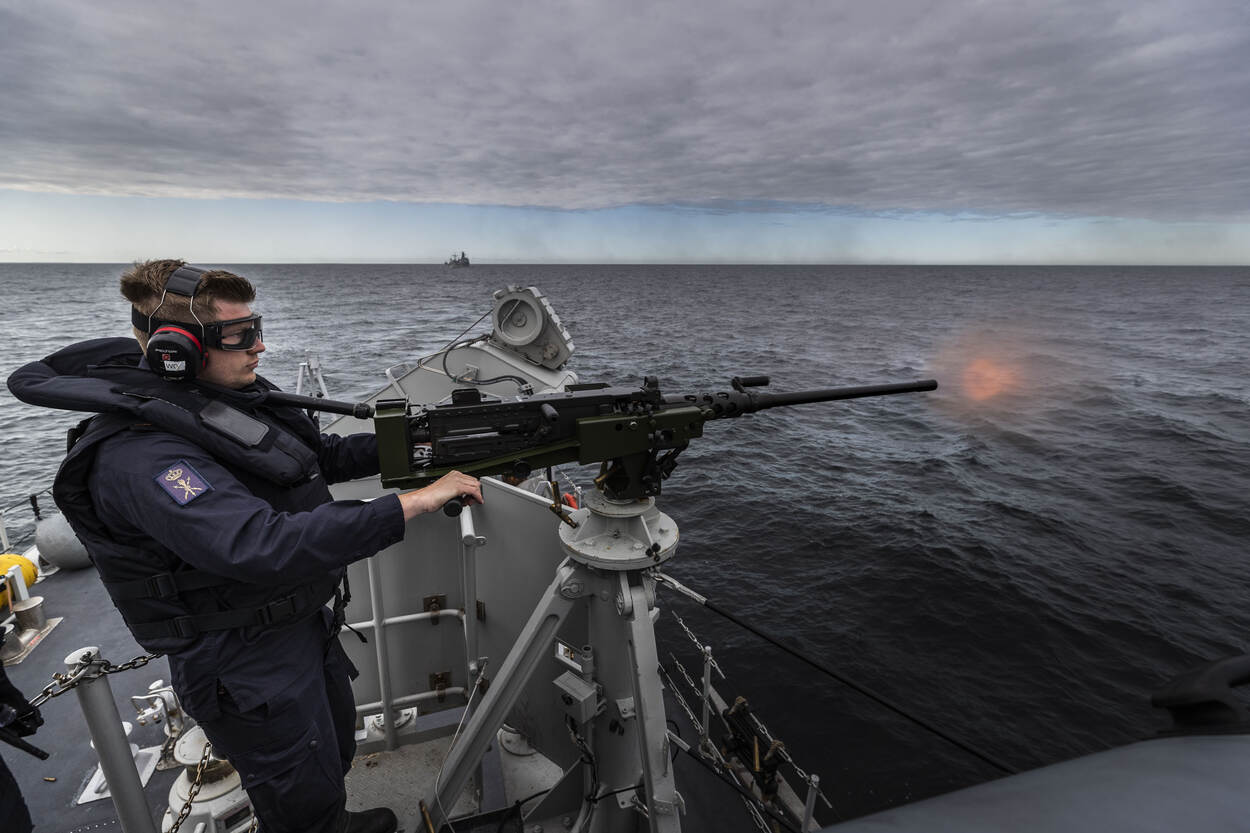 Nog eentje uit de oefening BALTOPS. Serieus geconcentreerd worden schietoefeningen afgewerkt op Zr. Ms Vlaardingen die samen met Zr. Ms. Makkum deel uitmaakt van de Standing NATO Mine Countermeasures Group 1. Het vlootverband is actief in de Baltische Zee tijdens de oefening Baltic Operations 2023 (BALTOPS 23).  (foto: sergeant-majoor Robbert Harteveld)