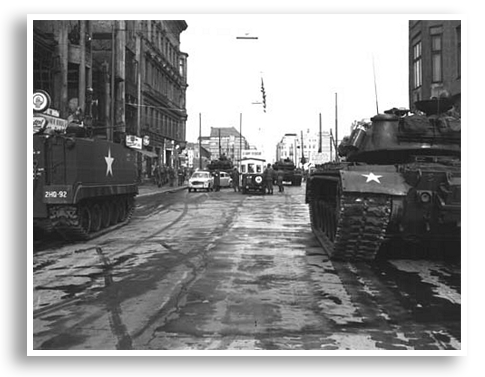 Tijdens de Koude Oorlog was grenspost Checkpoint Charlie het ultieme symbool voor zowel de scheiding van Oost en West, als voor de vrijheid die in het verschiet lag. Meerdere (politieke) beroemdheden maakten hun opwachting bij de controlepost. Bij een controle op 22 oktober 1961 van de Amerikaanse diplomaat Allan Lightner en zijn vrouw ontstond een felle discussie. Het leidde ertoe dat Russische en Amerikaanse tanks ruim een week met scherpe munitie tegenover elkaar stonden. Uiteindelijk liep het incident met een sisser af.