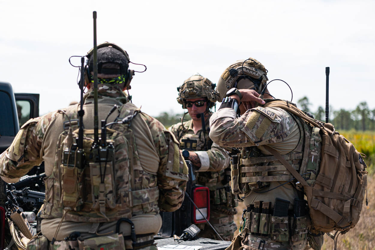 Tijdens de oefening Everglade Sun in Florida worden Amerikaanse, Canadese en Nederlandse JTAC teams (Joint Terminal Attack Controller, red.) getraind op het coördineren van close air support. Daarbij worden vliegtuigen 'op doel' gepraat ter ondersteuning van eigen troepen. Precisiewerk, want de veiligheid is in het geding. Dat kan dus nooit genoeg worden getraind. (foto: U.S. Air Force, 1st Lt. Katie Tamesis)