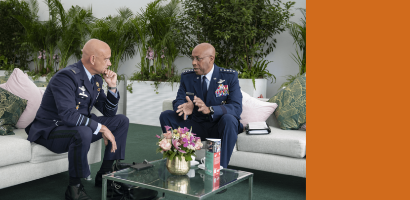 Bron: Defensie. Foto: Luitenant-generaal André Steur samen met zijn Amerikaanse collega Charles Quinten Brown (senior Airman Jason W. Cochran)