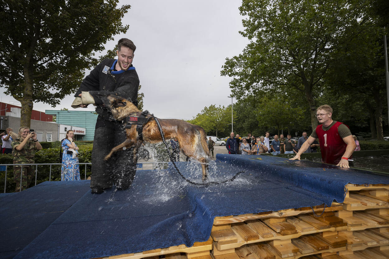 Dat heeft Martijn uit Limburg net ervaren met zijn surveillancehond Remmel. De hoofdagent is niet vies van een uitdaging, de Mudmasters staan al op zijn naam. “Dit is een heel andere belevenis. Je doet het samen. Ben jij kapot? Dan trekt je hond je er met al zijn energie doorheen.” Alhoewel… “Remmel was op een zeker moment ook best moe en kreeg een beetje een eigen willetje.” Bal gooien? Remmel vertikte het erachter aan te gaan. “Tja”, glimlacht Martijn. “Dan moet je toch met elkaar aan de slag. Zelf had ik het ook best pittig. Hadden we ons net door een sloot geploegd, zag ik de volgende alweer komen.”