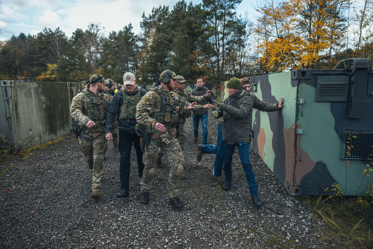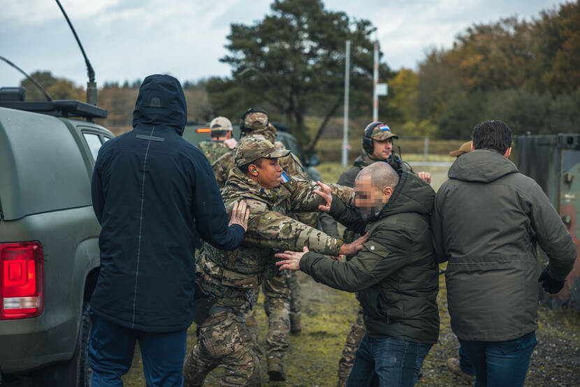 Eén van de worstcasescenario’s die geoefend werd, is een aanval op Nederlandse militairen waarbij geprobeerd wordt om in de voertuigen bij de vip te komen en de militairen wapens afhandig te maken.
